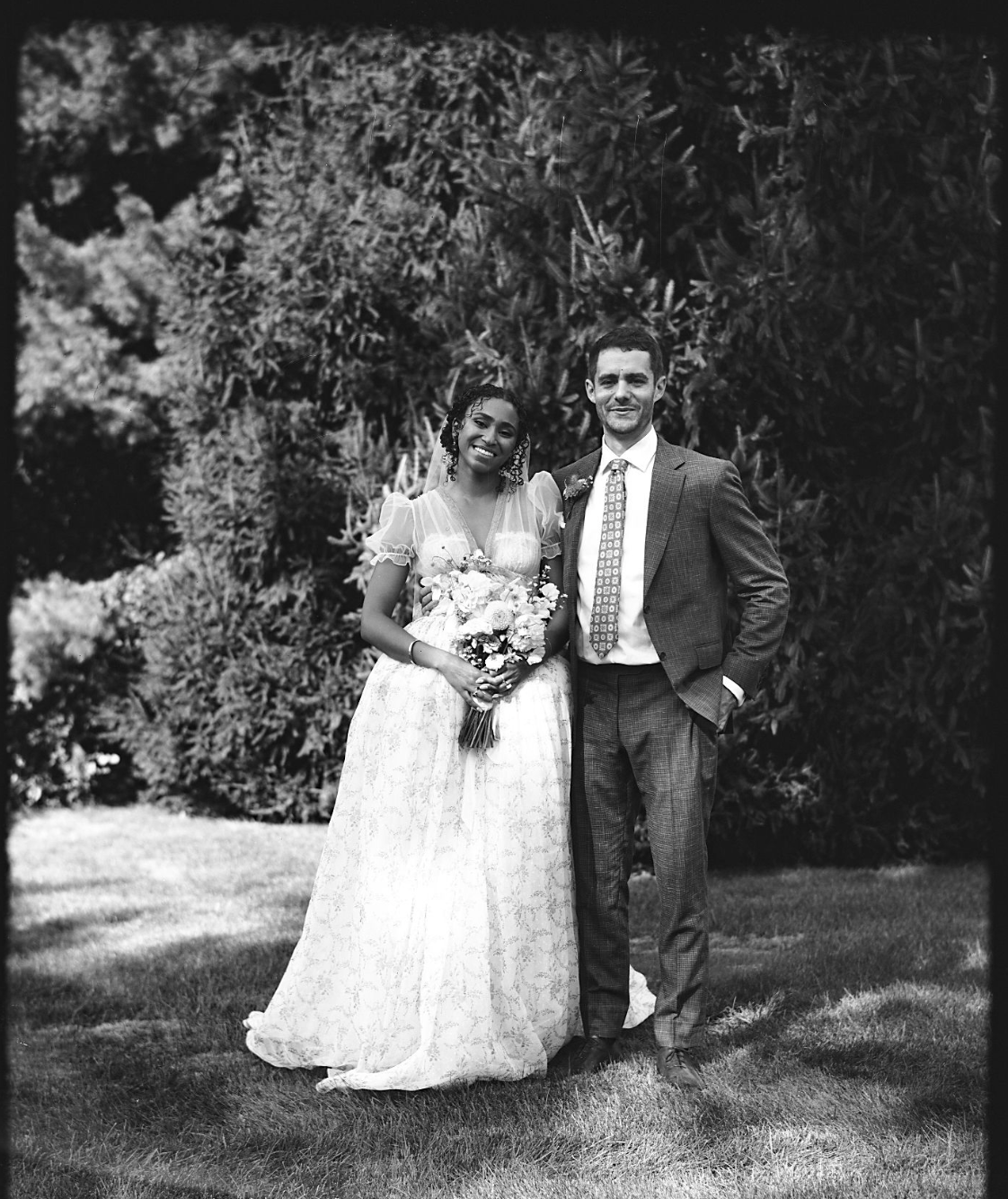 Noel and Jake on 4×5 during their wedding day, 2024. By Mina Sisley