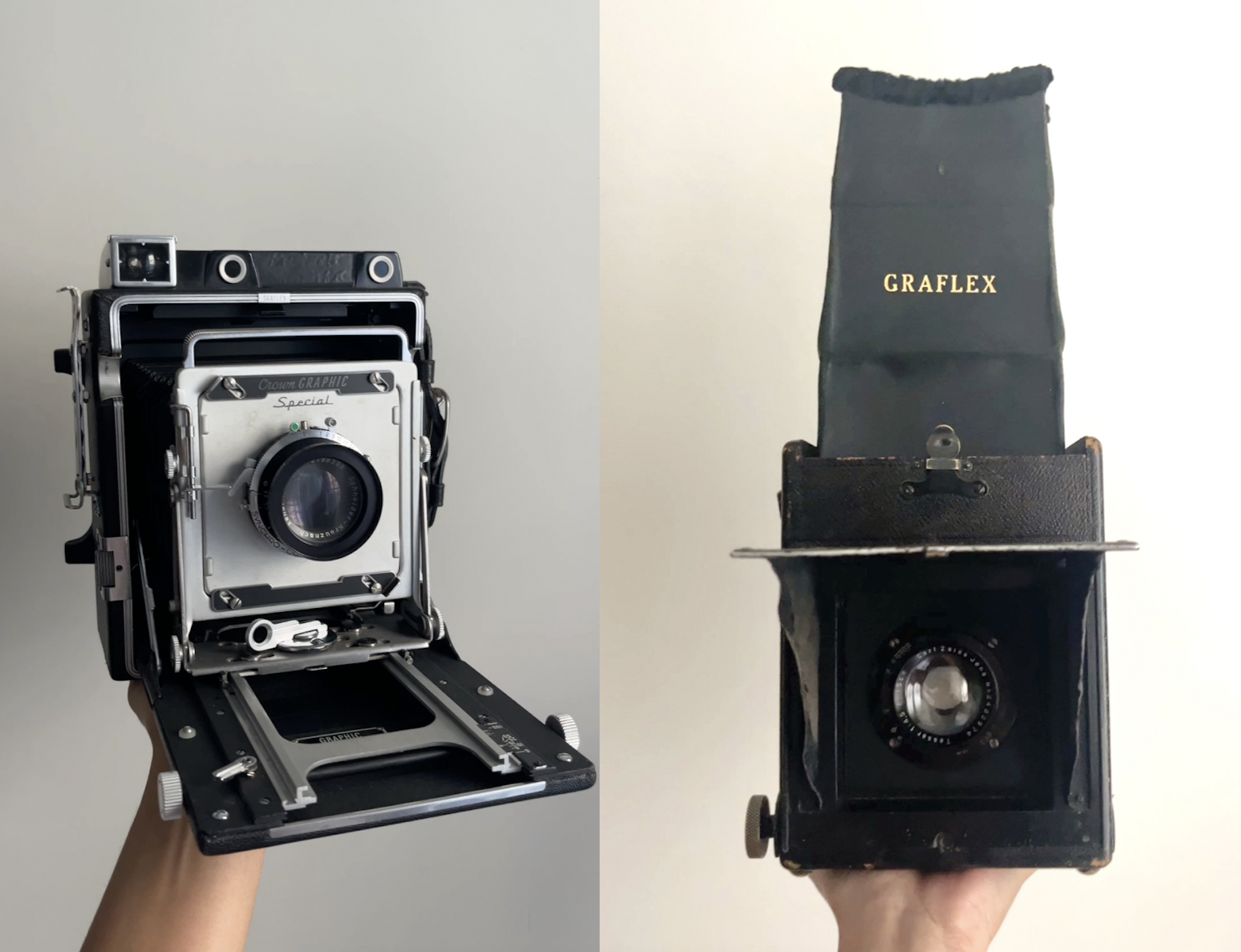 Crown graphic (left), Graflex series D (right) - both active cameras I use today