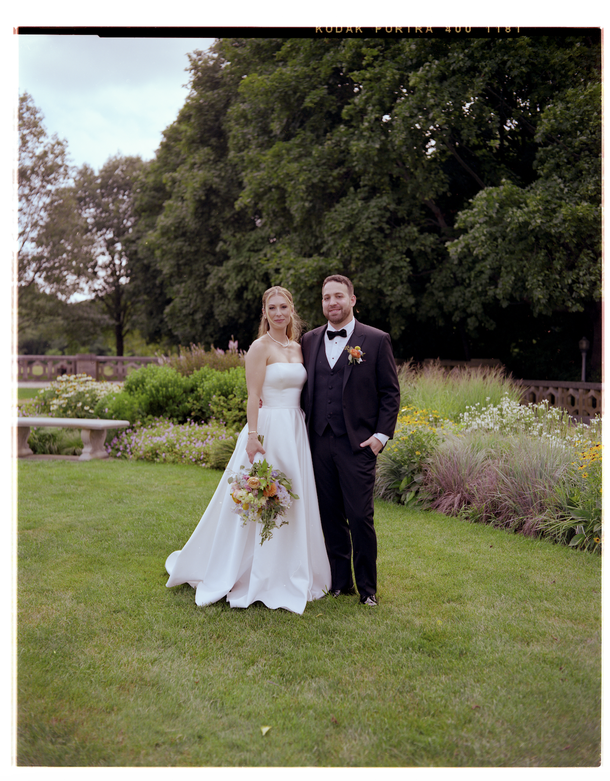 A classic wedding portrait of Devon and Jad on 4×5 large format film